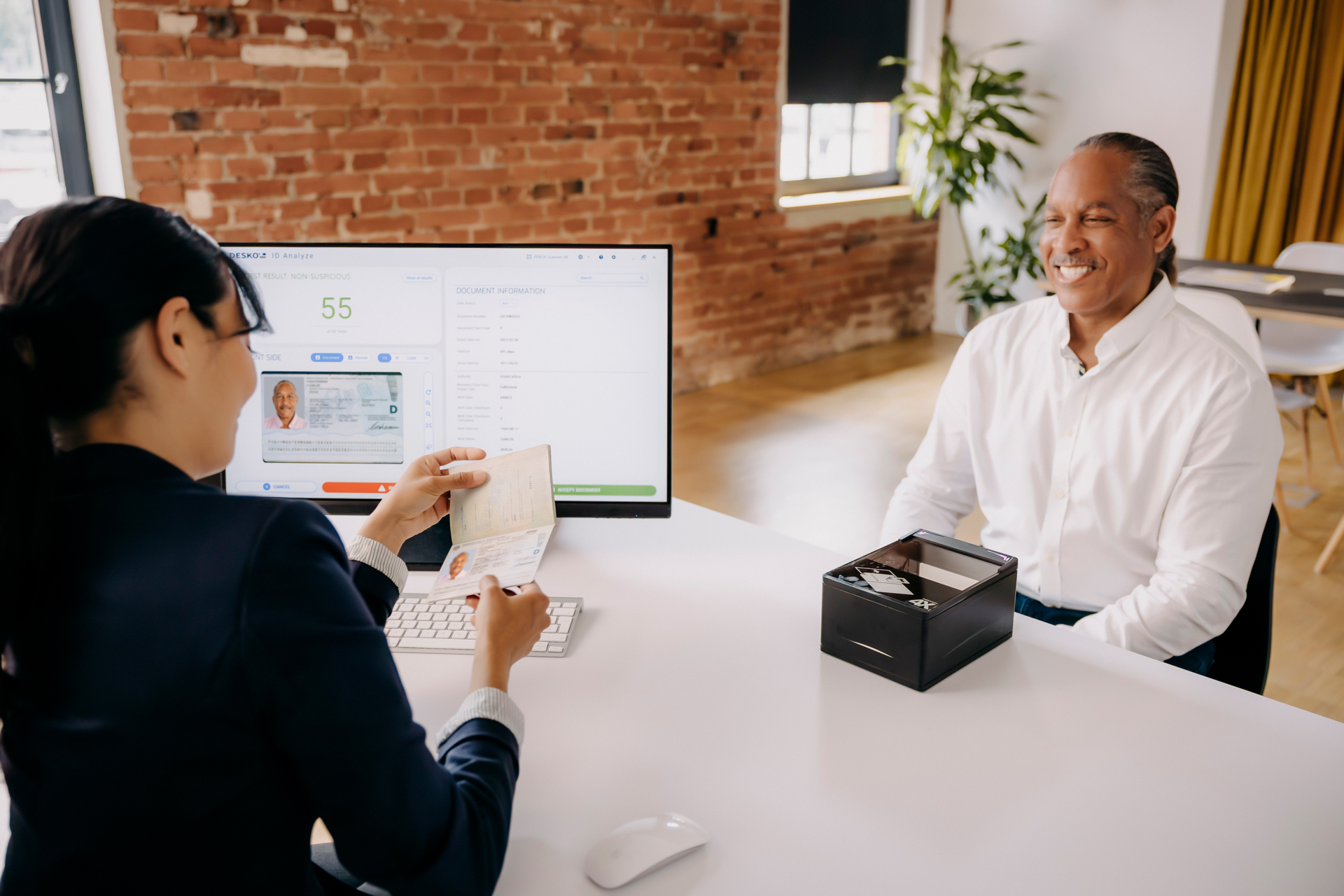 DESKO ID Analyze ist unsere Komplettlösung zur Erfassung und Verifizierung von Daten aus internationalen ID-Dokumenten. Das System besteht aus unserer eigenen Verifikationssoftware in Kombination mit einem ID-Scanner. Es ermöglicht die vollständige Authentifizierung von internationalen ID-Dokumenten und vereinfacht den Workflow der Identitätsprüfung erheblich.